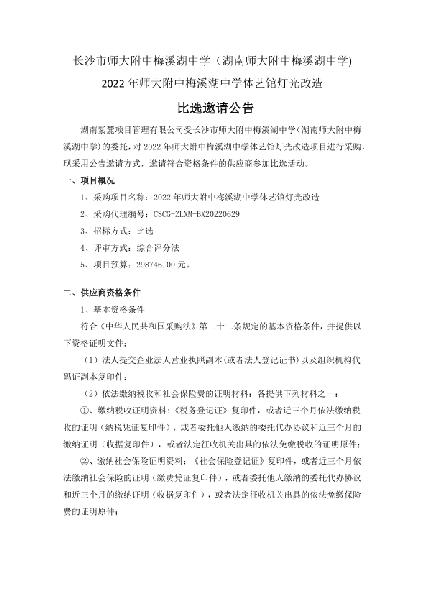 长沙市师大附中梅溪湖中学(聚彩彩票) 2022年师大附中梅溪湖中学体艺馆灯光改造 比选邀请公告