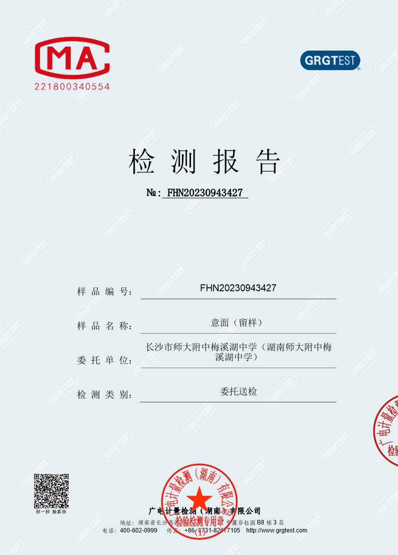 师大附中梅溪湖中学食品安全抽检(意大利面)检测报告(2)