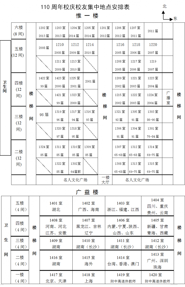 湖南师大附中110周年校庆校友集中地点安排表