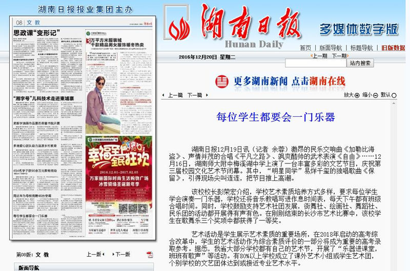 2.长沙晚报:师大附中梅溪湖中学举行第三届校园文化艺术节闭幕式暨优秀节目展演