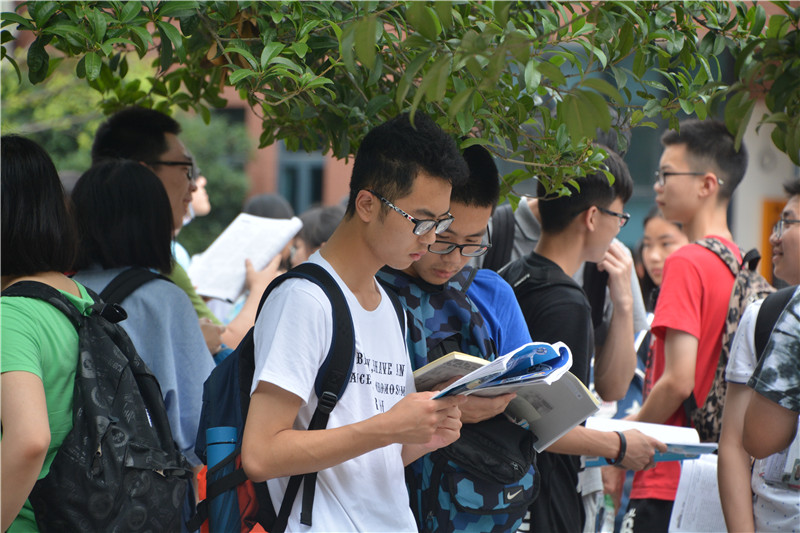 高二年级全体班主任身着红色送考服,全程收发准考证和身份证,每一个任课老师亲自送考,给学生们答疑,加油,他们就是师梅校园里最靓丽的那一抹红。