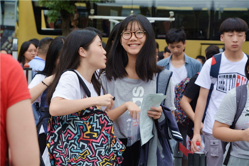 师梅高二学生、TFBOYS成员之一易烊千玺同学前来参考,和其他考生一样,安检后从容进场。同考室的学生们都非常安静,各自认真作答。