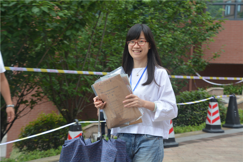 监考老师把试卷捧在胸前,细心地将试卷送至装订室。