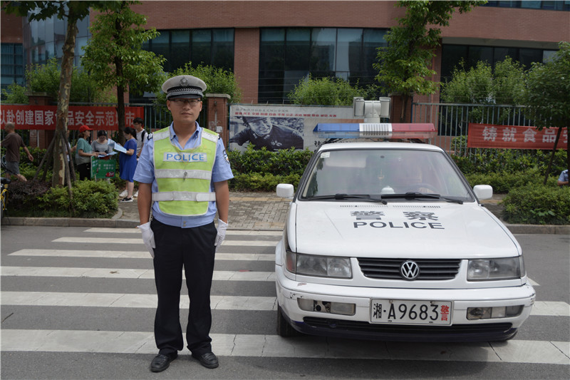 我校的家长义工队协助交警维持交通秩序,用这种方式为孩子送考。