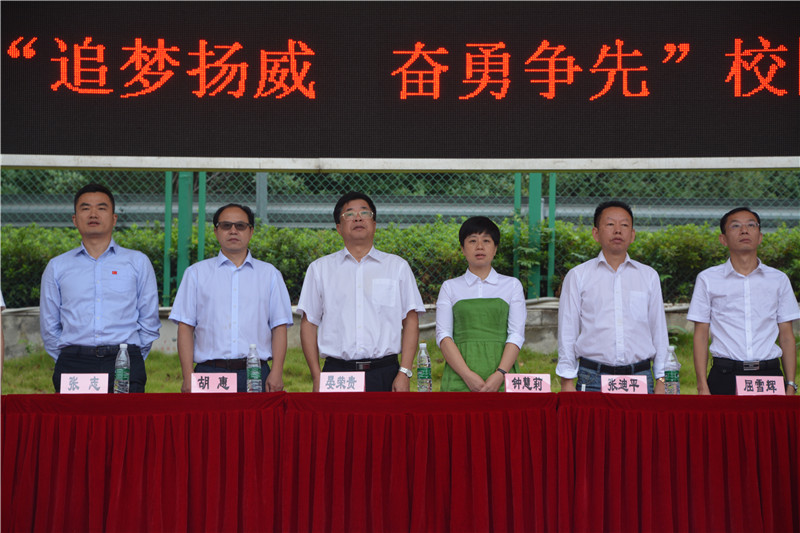 9月28日清晨7时30分,我校4000余名师生、家长在田径场隆重集会,举行第“追梦扬威,奋勇争先”校园体育节田径运动会开幕式。校长晏荣贵,党委书记钟慧莉,副校长胡惠、张迪平、张志,校长助理屈雪辉,全体中层干部,校学生会主席陈曦在主席台就座。开幕式由学工处主任胡田超主持。