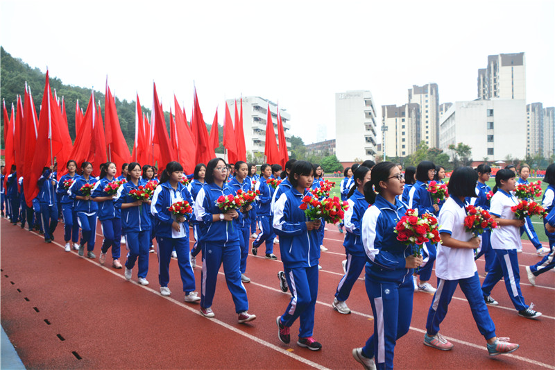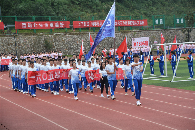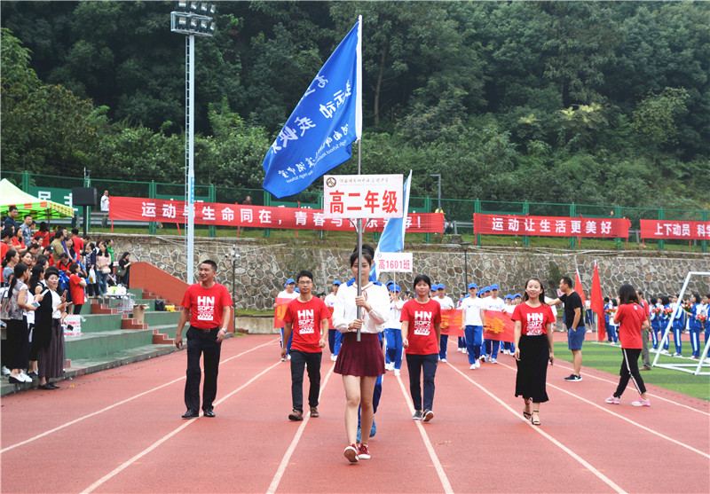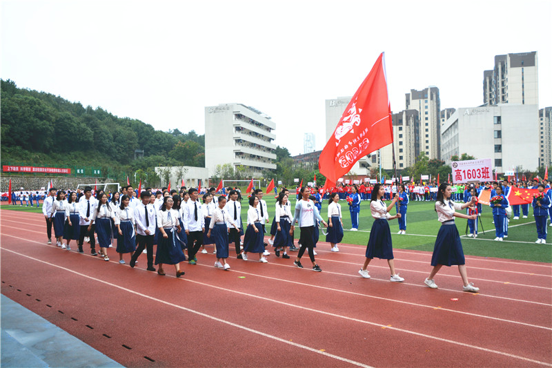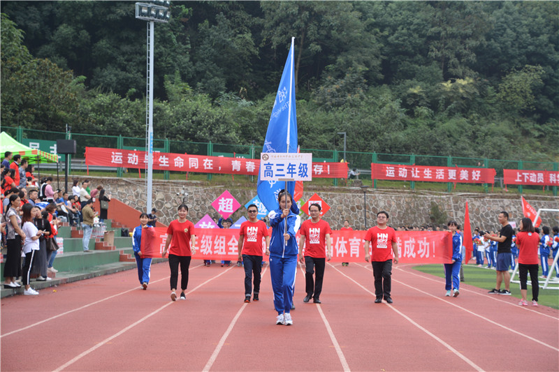 伴着慷慨激昂的《运动员进行曲》,在体育教研组组长、本届田径运动会技术代表殷建波的指挥下,国旗队、鲜花队、裁判教职工队、高中六个年级各班方阵依次入场,从主席台前走过。他们精神抖擞、斗志昂扬,富有班级特色的创意表演精彩不断、亮点纷呈。有炫丽夺目的才艺表演,变化多端的展板拼接,动感活泼的现代热舞,有整齐划一列队展示……同学们用丰富的想象力尽情地展现着自己的青春活力所有人大开眼界,掌声不断