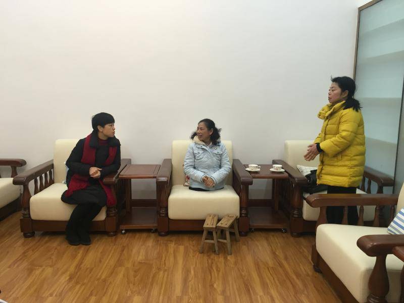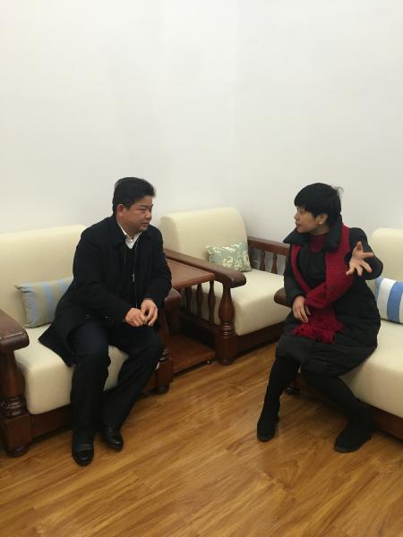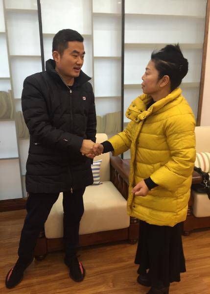 师大附中梅溪湖中学党委书记钟慧莉同志热情接待全国道德模范许月华同志和福利院袁琪院长。