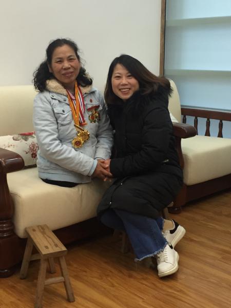 八年级年级组长成丽老师与许月华同志合影。