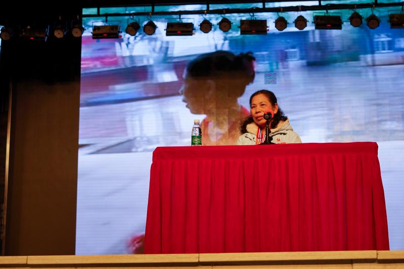 报告会上,许月华的同事、福利院院长袁琪以《一支永不凋谢的康乃馨》为题,向同学们讲述了"板凳妈妈"许月华的感人事迹。许月华照顾残疾儿童不嫌脏,不怕累,一生都坚持感恩党和社会。她将福利院里的残疾儿童照顾得无微不至,在丈夫得肺癌的情况下坚持让儿子留在部队,独自承担起家庭与慈善的重担,即使是自己患肿瘤住院期间,她仍然不忘将乐观积极的正能量传递给病友们。
