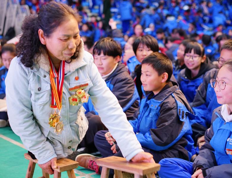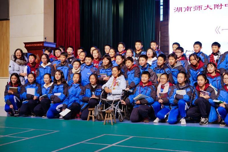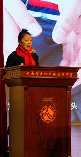 15日下午,全国道德模范人物、"板凳妈妈"许月华应邀来到师大附中梅溪湖中学,向老师学生们讲述了她用板凳支起的人生故事。她助人为乐、无私奉献的事迹感动了在场的每一位听众。