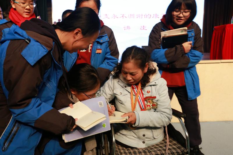 合影后,孩子们找许妈妈签名。
