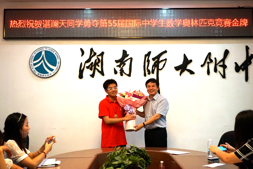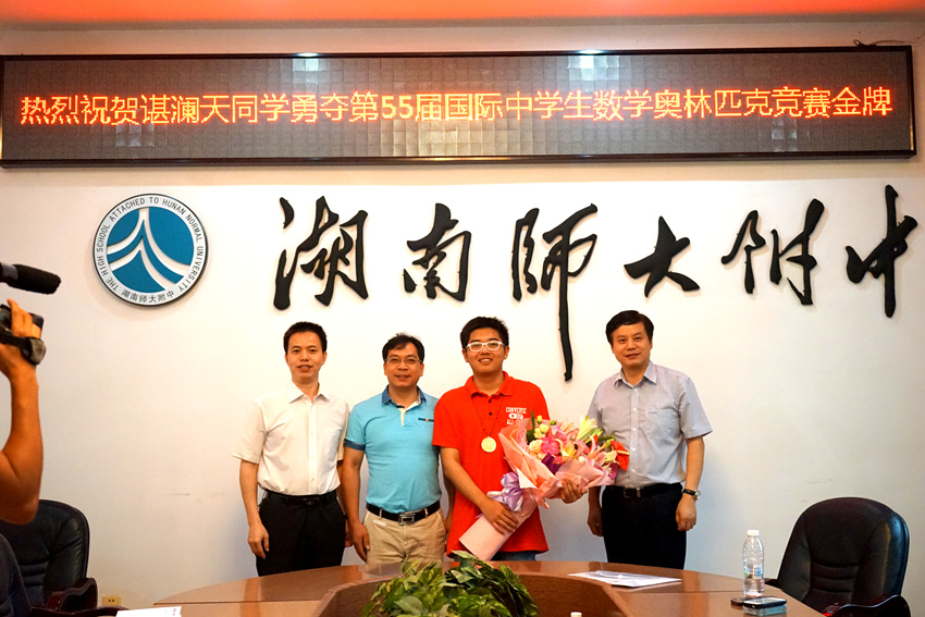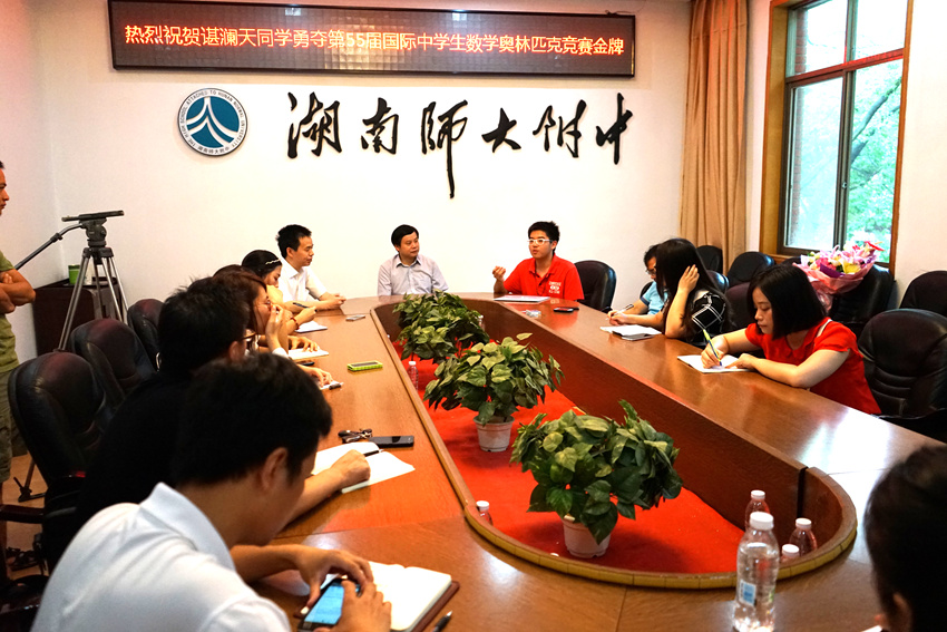 湖南日报、潇湘晨报、三湘都市报、长沙晚报、湖南教育电视台等主流媒体对谌澜天同学勇夺国际中学生数学奥林匹克竞赛金牌进行了集中采访。