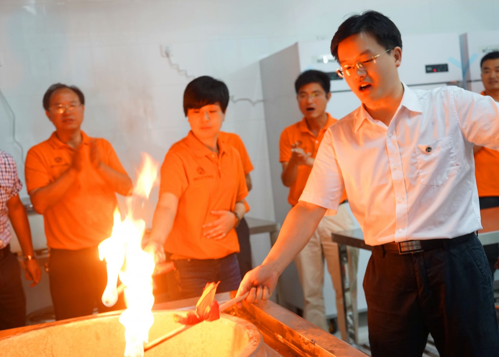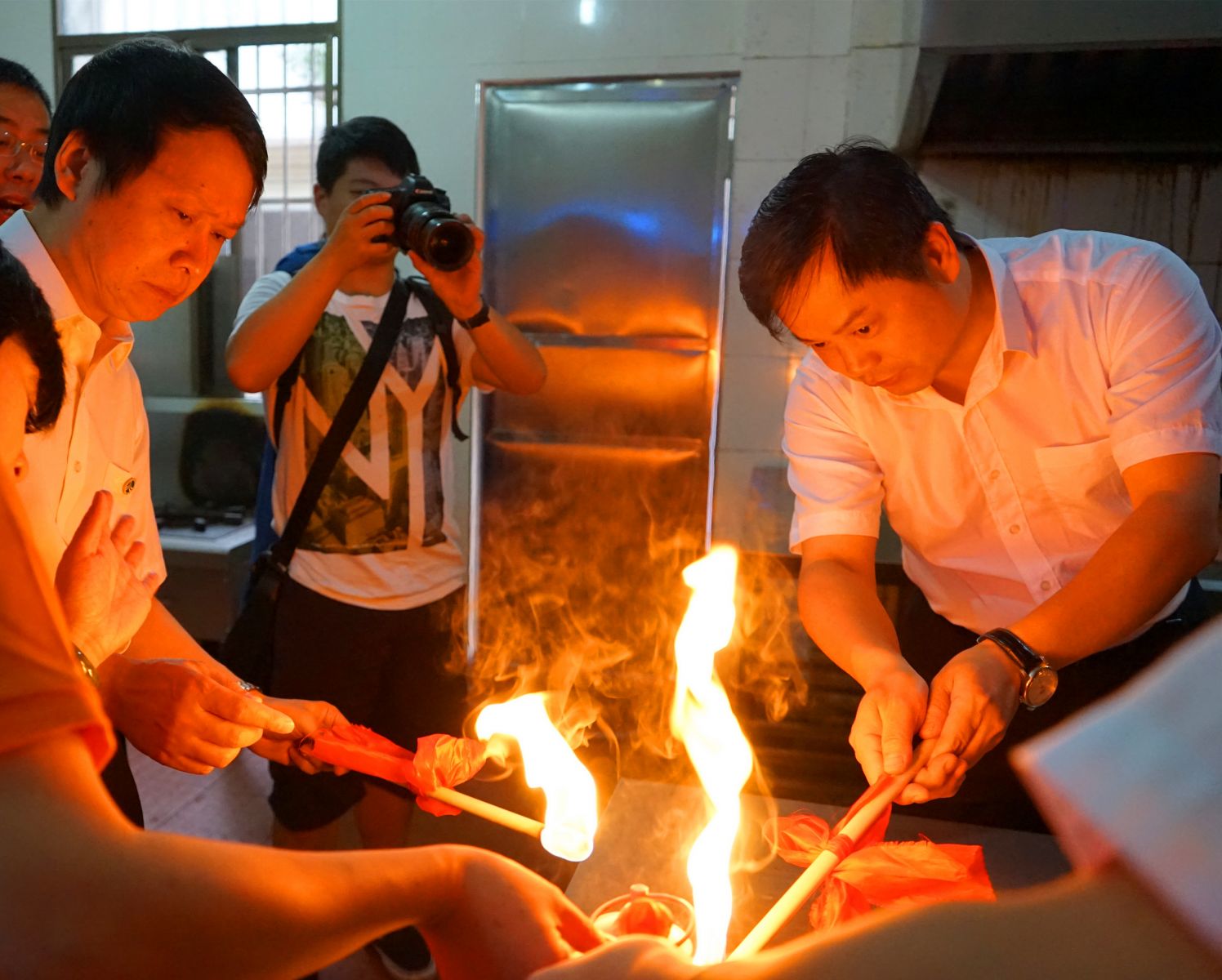 喜雨漫天飞舞,红绸迎风飘扬。8时许,湖南师大附中校长谢永红、党委书记曾少华来到附中食堂,在炉灶上亲手为我校采集火种,并点燃了火种灯。谢永红、曾少华认为采火点火仪式意义重大,寓意深远。“传承附中薪火,点亮师梅梦想”,他们祝福我校各项事业红红火火。我校校长彭荣宏、党总支书记钟慧莉共同接过火种灯,表示将发扬附中百年优良传统,全面提升办学质量,努力实现学校科学发展。