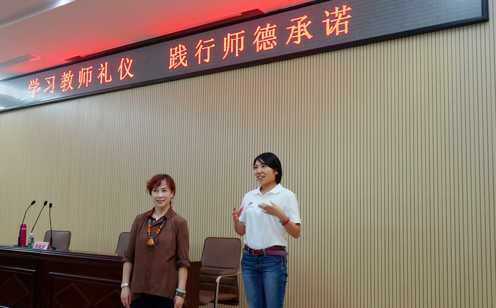 8月17日下午,湖南师大工程与设计学院服饰艺术表演专业苏晓如副教授应邀来校作礼仪培训。校党总支书记钟慧莉主持培训活动。