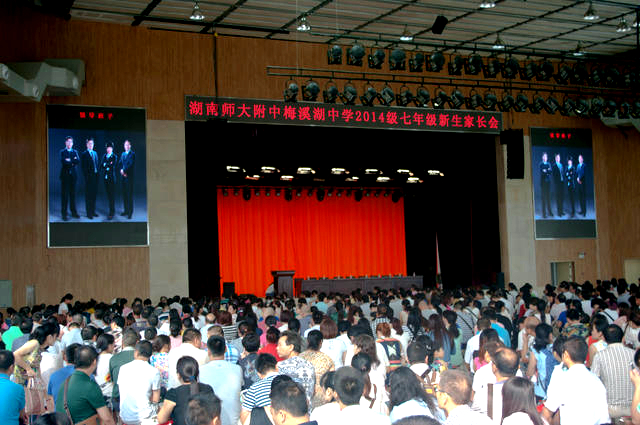 8月20日上午,我校2014级七年级新生家长会在体艺馆三楼礼堂举行。我校校长彭荣宏、党总支书记钟慧莉、副校长胡惠出席会议。家长会由副校长莫晖主持。