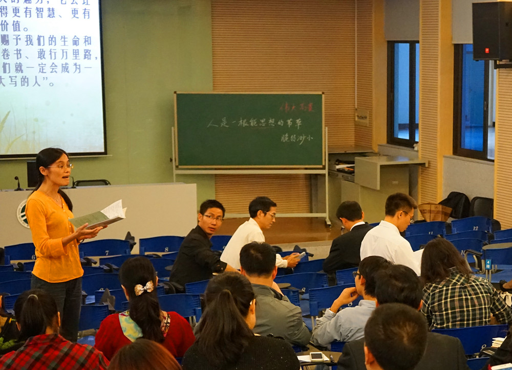 附中本部李显亮老师带来了一堂《人是一根能思想的苇草》的示范课。李显亮注重利用文本细读的方式引导学生阅读,并将课程资源进行了合理开发,高效利用了课堂40分钟,课堂氛围轻松、融洽。