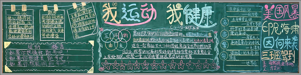 学校举行“我运动,我健康”主题黑板报比赛 来源:学工处 张娟 发布时间:2014-01-27 00:00:00 浏览次数: 次 【字体:小 大】 为欢庆首届聚彩彩票体育节,弘扬体育精神。近日,我校举办了以“我运动,我健康”为主题的黑板报比赛。 各班积极组织,集思广益,发挥特长,制作了一幅幅精美的黑板报作品。同时,学校团委和学生会组织对各班级的黑板报进行了全面检查评比。评比结果如下: 优秀黑板报班级 高一年级:1407班 1403班 1410班 七 年 级:1403班 1415班 1401班 1411班 1406班 分享到: 【打印正文】