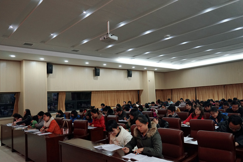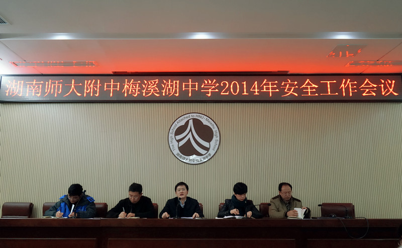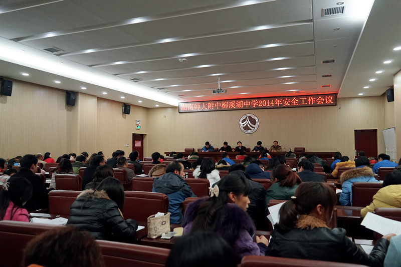 12月11日下午,学校2014年安全工作会议在图书馆一楼会议室举行。校长彭荣宏,副校长莫晖、胡惠出席会议。党总支书记钟慧莉主持大会。全校教职工129人参加了会议。