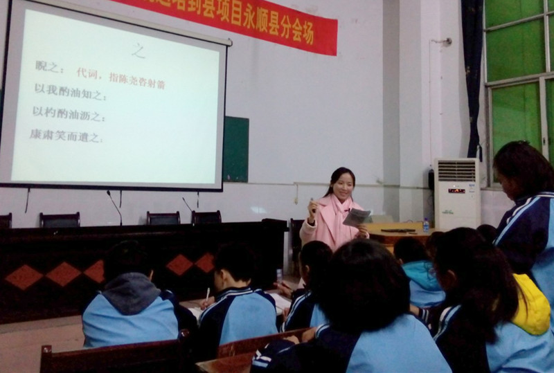 12月12日,湖南省“国培计划2014”中小学“送培到县”项目走进永顺县。我校语文组教师陈林梦为此次培训奉上了一堂精彩的示范课《卖油翁》。