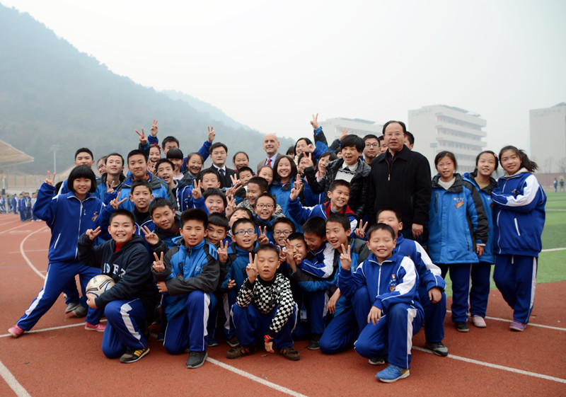 仪式前,Cary Anderson(卡里·安德森)一行参观了校园,并与我校学生展开了交流互动。
