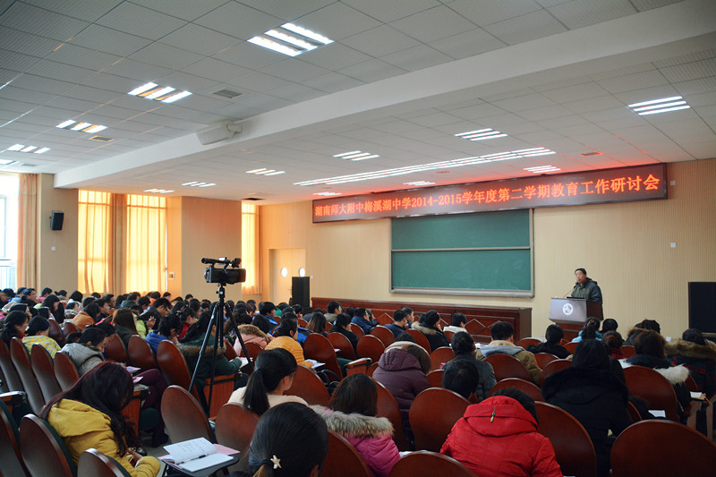 3月1日上午,学校2014-2015年度第二学期教育工作研讨会在教学楼三楼阶梯教室举行。校长彭荣宏,党总支书记钟慧莉,副校长莫晖、胡惠和全体教职工一起参加了会议。会议由莫晖主持。