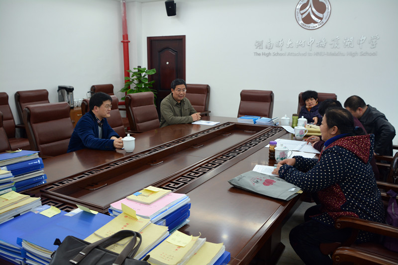 3月19日下午,长沙市教育局常规管理工作检查组一行在市教育局学工处处长廖学文、市教科院质检所所长袁苍松带领下,前来我校进行教育教学常规管理工作检查。校长彭荣宏、副校长莫晖热情接待了检查组成员。