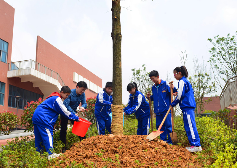 彭荣宏一边挥锄一边表示,这一切都与学校“为了明天的你”这一办学理念有关。他期待我们这所新学校、我们学校的首届师生能与这株年轻的树一起茁壮成长,祝福我们的明天就如同这株树的明天一样本固枝荣,绿叶繁盛。