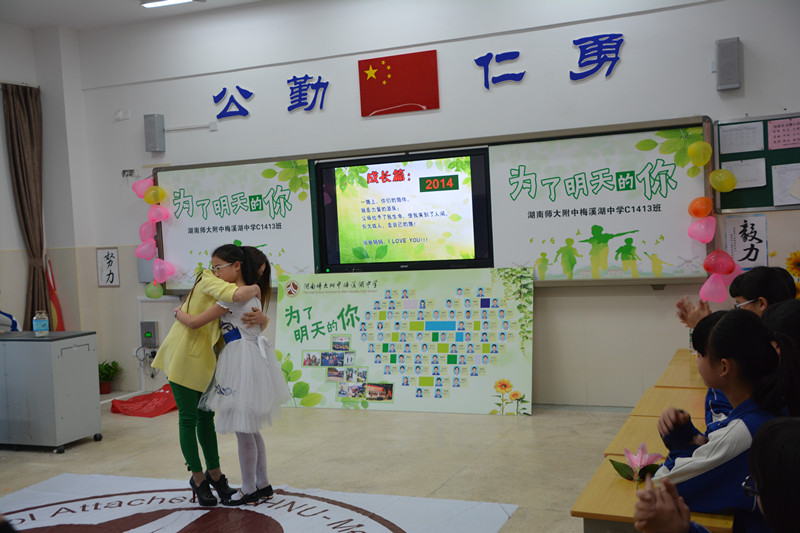 其次,班会筹备和实施的过程中,同学们从不知所措,到积极参与,他们总是虚心接受意见、主动调整并积极组织队员练习。筹备的过程也是孩子们成长的过程,也是为了明天的你。为了明天的你这个主题,并不是最后这40分钟才体现出来的。他们群策群力,虚心采纳彼此意见;编剧组的同学耐心听取不同的声音,多次重写剧本;原本有隔阂的同学摒弃前嫌,通力合作;有些平时不善表达的同学也积极参与其中,甚至还勇敢地站到了舞台中央大胆地表演。所有同学都在借这个机会和周围的同学们进行积极的沟通,都收获颇丰。孩子们的成长是这次班会最大的收获。尤其让我感动的是,喜报中的成功人士本来是张伟涛,为了《天怡访谈录》这个节目,他准备了很久。后来因为自己的声音略显稚嫩,为了集体利益,他欣然地将机会转让给声音比较浑厚的蔡丰怿。那一刻,他的脸上是挂着微笑的,那种笑容那么真实而充满阳光。另外一件事也让我印象深刻,就是在这次班会中投入最多的邓凯同学,他为了写剧本,几乎忘记吃午饭。但是,当他发现原本安排的演话剧的同学里有一人没有角色时,他毅然将自己的角色让给了这位同学,姚刘嘉。本来我是没有同意的,因为在他投入那么多后,我有些不忍心不让他出场。但是晚上回到寝室,他又借了生活老师邓老师的电话给我打电话,再次请求将角色让给姚刘嘉。我为有这样一群学生而感到骄傲。也深深地相信:明天的他们一定会更美好!