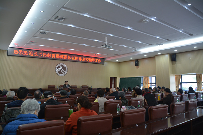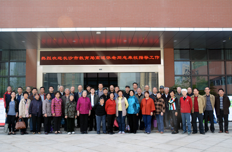 4月16日上午,长沙市教育局离退休老同志60余人在长沙市教育局离退休人员管理服务处处长李超的陪同下,来我校考察指导工作。我校校长彭荣宏、副校长胡惠、教务处张迪平、学工处主任张志、校办副主任张丽热情接待了老同志们。