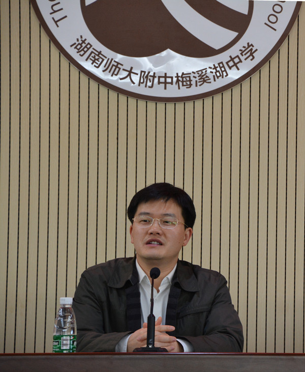参观完后,来宾们来到学校图书馆一楼会议室休息、座谈。彭荣宏对长沙市教育局和各位老领导对我校的大力支持和殷切关怀致以了诚挚的感谢。他还介绍了学校的基本情况、办学理念和办学特色。他指出,办学理念是“为了明天的你”,校训是“公勤仁勇”,学校致力于打造以“乐教善育”的教风和“乐学善思”学风为核心的乐善教育。最后,他希望各位老前辈多来学校考察,为我校的建设与发展提供指导意见。