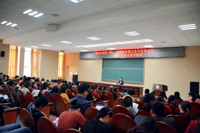 “老师,你幸福吗?”4月20日下午,北京师范大学肖川教授一到场,就向台下的教师发问。第四期乐善大讲堂,聚彩彩票特邀肖川来校作题为《教师的幸福人生与专业成长》的讲座,校长彭荣宏与全校教职工共127人一道享受了这场心灵的盛宴。