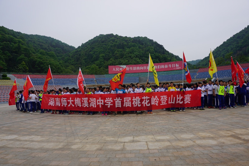近日,学校举办了首届桃花岭登山比赛,比赛分个人项目和班级团体项目进行。校长彭荣宏、副校长莫晖、副校长胡惠出席活动启动仪式。同学们从学校东门开始登山。
