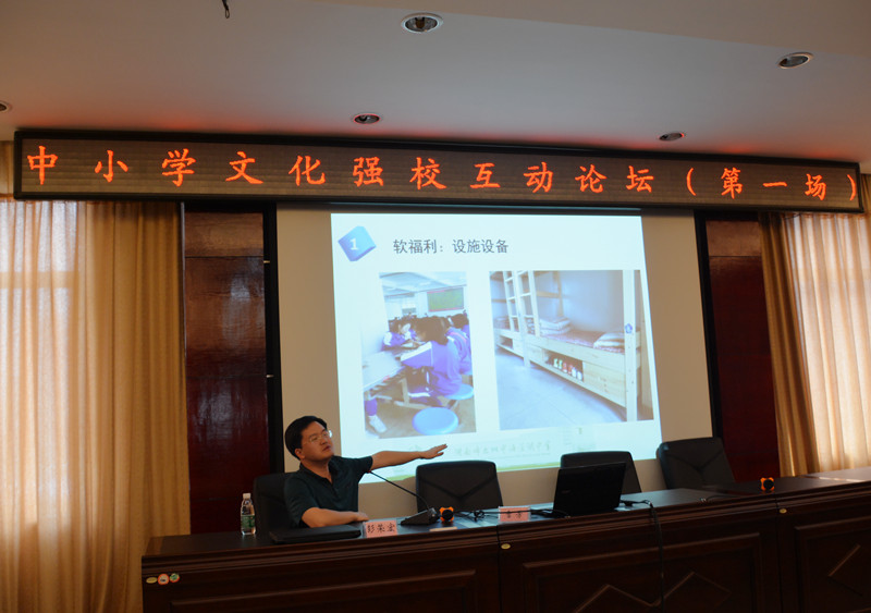 5月6日下午,湖南省中小学文化强校论坛在省教科院开讲,来自全省各地的200余位教育专家、名校长汇聚一堂,共享文化建设经验,研讨教育未来走向。我校校长彭荣宏受大会邀请,作为新建中学的唯一代表作专题经验介绍。