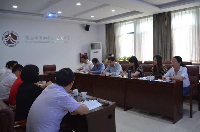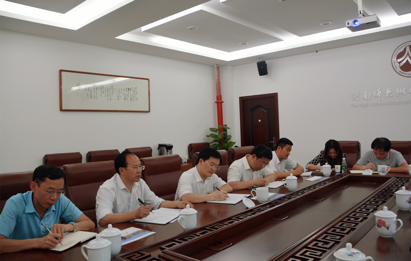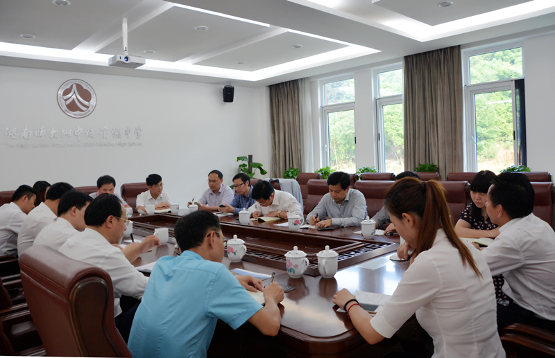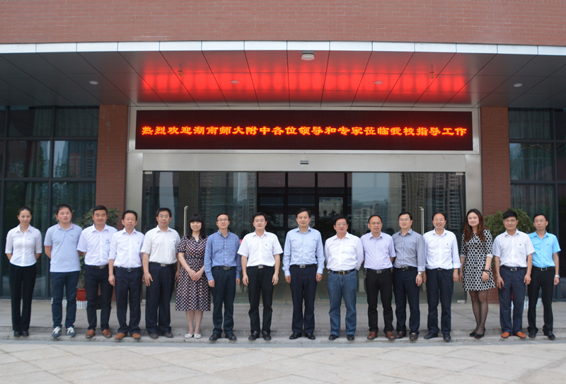 5月14日,湖南师大附中校长谢永红、副校长黄月初、教务处主任张胜利、学工处主任郭在时、教科室主任左小青、人事科科长肖晓辉一行来校调研。校长彭荣宏率全体行政人员热情接待。