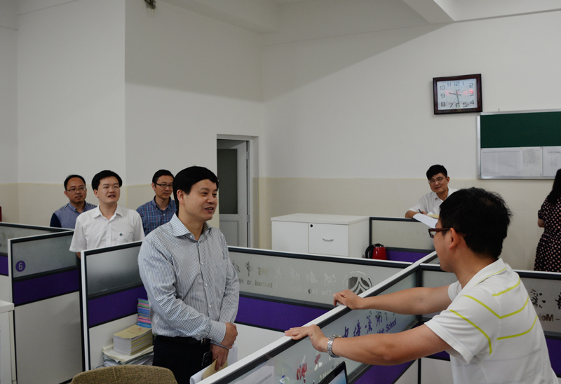 谢永红一行首先深入课堂随堂听课,具体了解学校教学情况。调研组分成两组分别听取了七年级陈林梦老师的语文课、毛迎老师的英语课和高一年级甘林蛟老师的数学课、谭红梅老师的物理课。