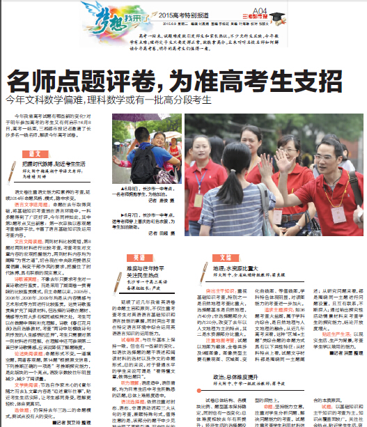 6月8日,高考一结束,三湘都市报记者邀请了长沙多名一线名师,解读今年高考试卷。我校语文组马晴晴、刘婷老师受邀解读语文试卷。