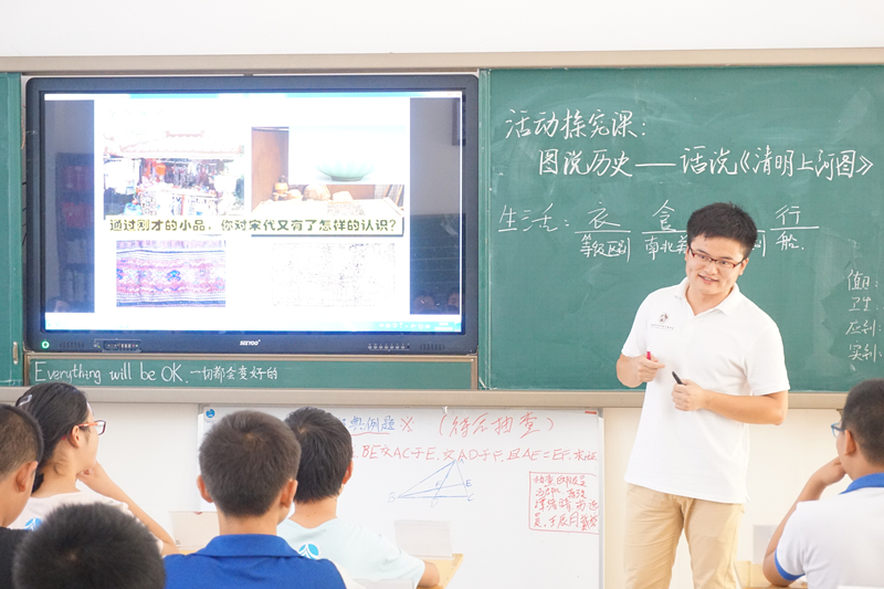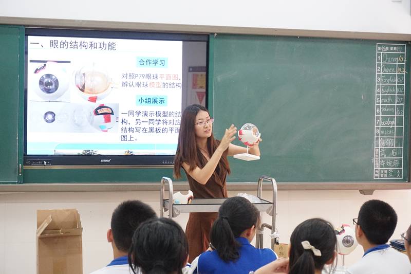 数学组两位老师参加了汇报课,宋翔飞老师在C1402上了一堂《线段的垂直平分线的性质》,贺川芝老师在C1414上了一堂《最短路径问题》。物理组尹玲娟老师在G1402上了一堂《电荷及其守恒定律》。化学组彭焜老师在G1403上了一堂《煤、石油和天然气的综合利用》。生物组周筛芬老师在C1407上了一堂《眼和视觉》。政治组彭红桂老师C1410上了一堂《两代人的对话》。历史组汪鹏老师在C1401上了一堂《图说历史-话说<清明上河图>》。地理组两位老师参加了汇报课,徐丽姣老师在C1414上了一堂《法国》,谢志力老师在C1405上了一堂《美国》。