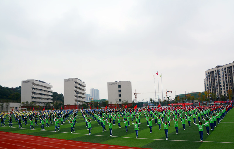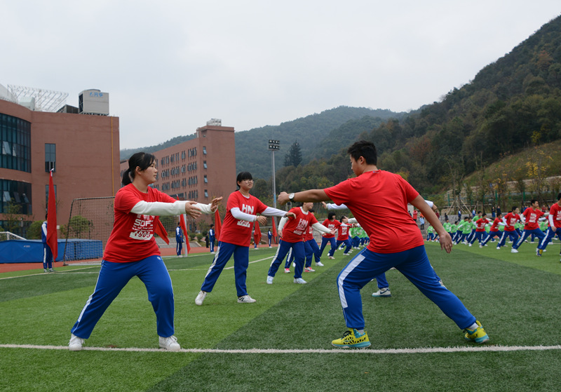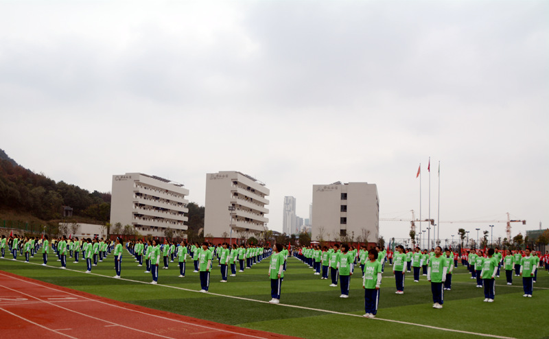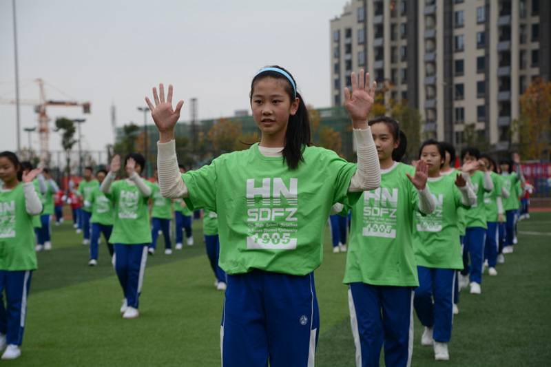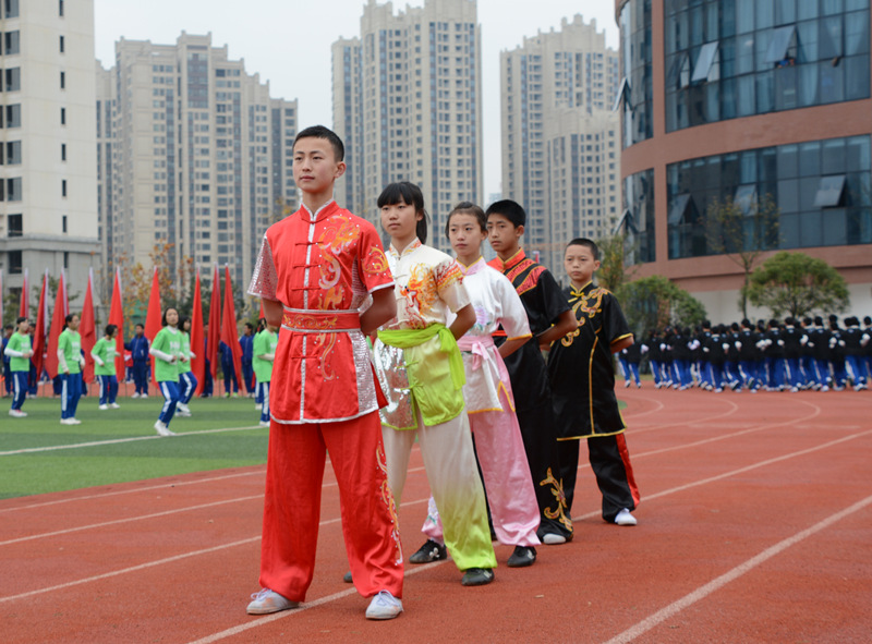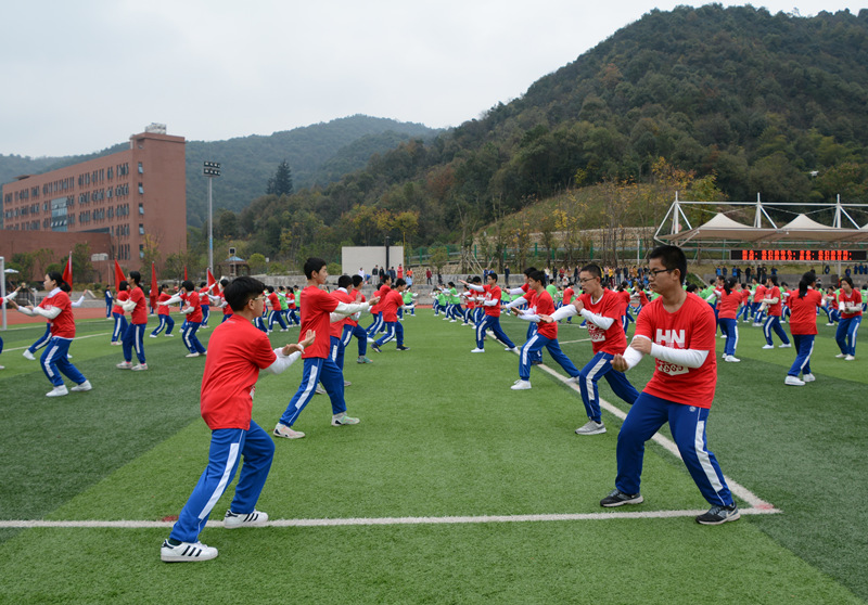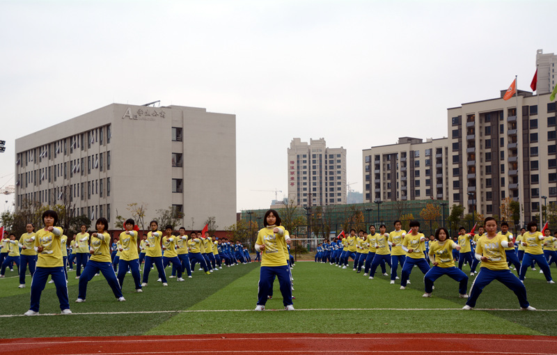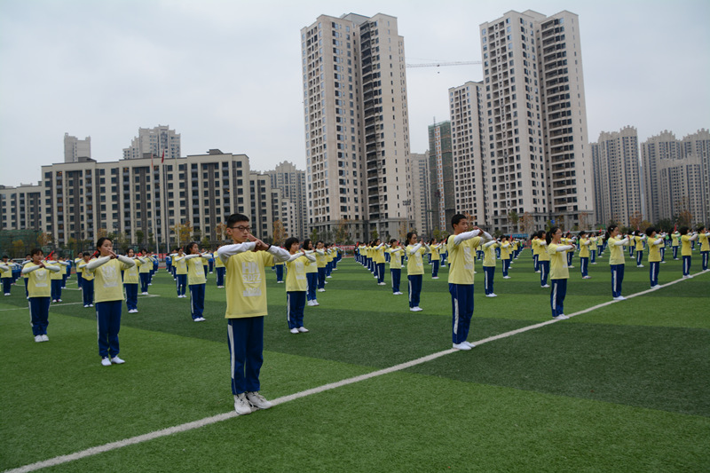 我校大课间活动分为礼仪篇、功夫篇、快乐篇和养生篇四个篇章,学生通过跑操、队列队形、武术操、节奏体语和太极禅的表演充分展现了我校学子青春、阳光、向上和自信的风采。宏大的气势、壮观的场面、精湛的技术、动感的表现也让每一位观赏者赞不绝口。
