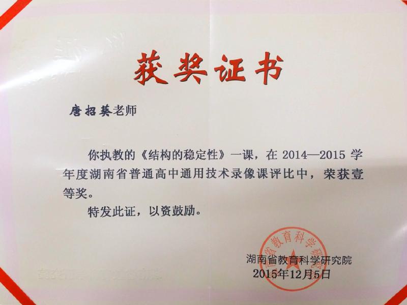 喜报:通用技术唐招葵老师获得湖南省通用技术录像教学竞赛一等奖 来源:劳技\党务 发布时间:2015-12-16 14:34:30 浏览次数: 次 【字体:小 大】 近日,喜讯传来,我校通用技术唐招葵老师获得湖南省通用技术录像教学竞赛一等奖并在全省通用技术教学研讨会上(全省选推3名)作为示范课进行现场教学。 分享到: 【打印正文】