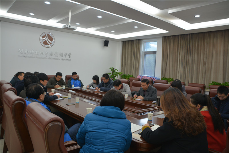 1月8日,湖南师大附中副校长黄月初、校长助理兼湖南师大附中教育集团办公室主任康辛勇、学生发展处主任郭在时、科研与教师发展处主任左小青、校办公室副主任周琼、教学与课程处副主任蔡任湘一行来校进行教师队伍建设专题调研。校党总支书记钟慧莉,副校长胡惠、张迪平、张志,校长助理屈雪辉,校办公室主任谭伟,教科室副主任李湘黔,保卫处副主任兼学工处副主任胡海军等热情接待调研组一行。