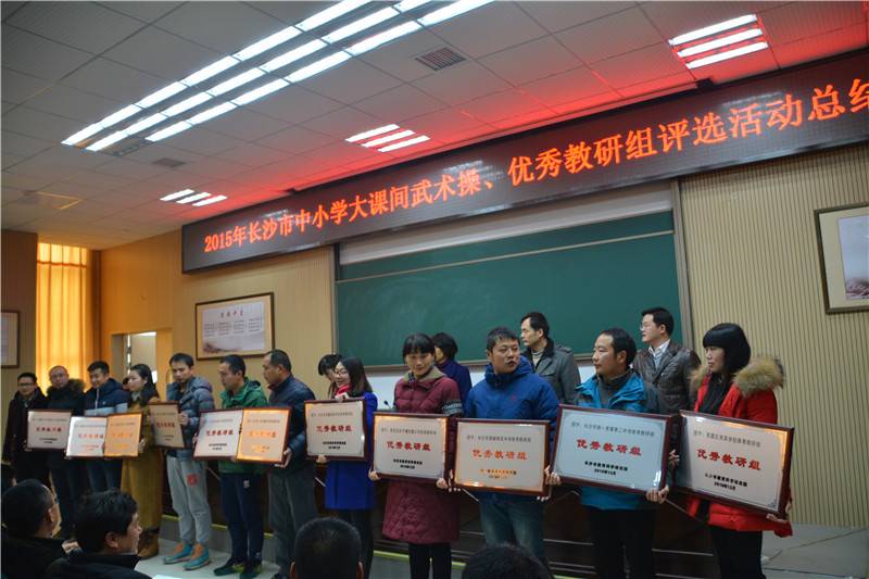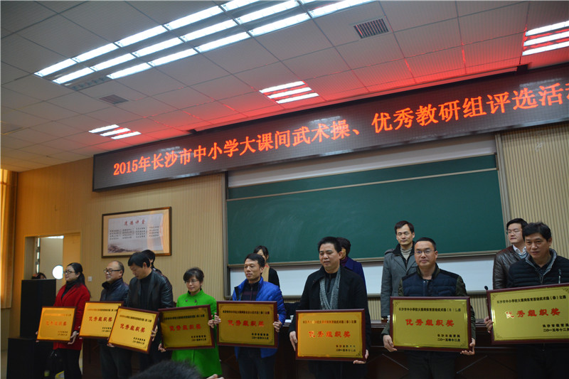 1月19日上午,2015年长沙市中小学大课间武术操、优秀教研组评选活动总结表彰大会在我校教学楼三楼道德讲堂举行。我校荣获初中组一等奖。