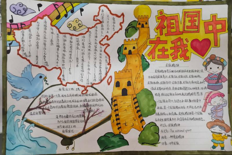 为加强中学生爱国主义和社会主义教育,进一步激发学生的民族自尊心、自信心、自豪感,培养学生与伟大祖国同呼吸、共命运的爱国热情,同时,培养学生的参与意识和动手创新能力,我校八年级举行了以“爱我祖国”为主题的手抄报比赛活动。