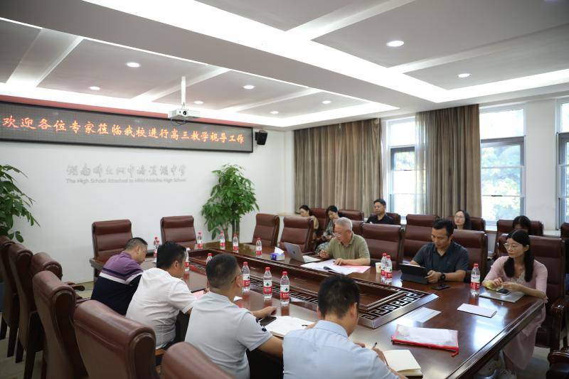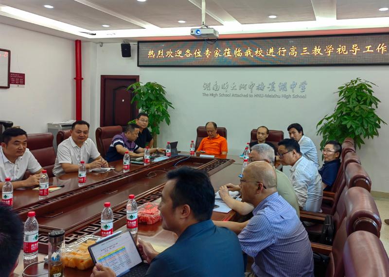 为进一步深化普通高中课程改革,积极推进新课程新教材实施,提高课程实施水平,加强学生发展指导,促进教、学、评有机衔接,形成育人合力,推动教育教学高品质发展,9月19日下午,长沙市教科院孔春生副院长携各学科专家莅临我校进行高三教学视导。学校各级领导高度重视,结合学校实际,做了周密安排。13:50正式召开调研见会面,我校党委书记许庆丰,校长张志,副校长胡惠、李勇等校领导出席此次会议,高三年级组长马业武在会上做了我校高三年级工作情况汇报。此次视导包括学校教学管理、课堂教学情况、备课组建设等。