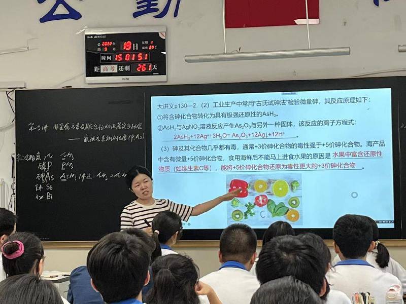 化学老师彭焜本节课抓纲务本,深研高中化学教材,注重知识的前后衔接,将原子结构、元素在周期表中的位置、价类变化规律渗透到P、As及其化合物的性质预测中,引发学生多角度、多层次地思考,领悟到物质变化的规律,并通过证据推理从而建立模型认知。李老师评价彭琨老师擅于挖掘素材,上了一堂基于“新教材、新课标、新高考”的优质复习课,在元素的纵横联系中碰撞出智慧的火花,学生既感受到化学学科的价值,又全面提高了化学学科素养。