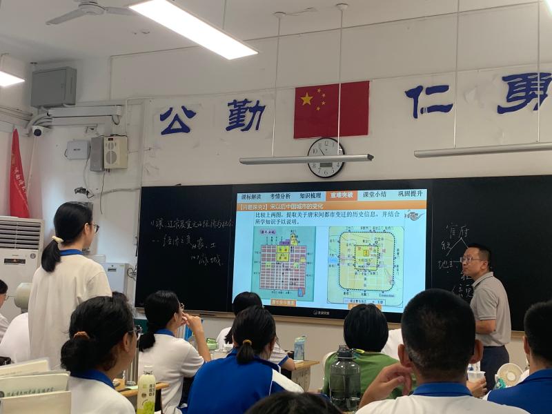 历史老师柯建峰本节课从钱穆、邓广铭等几位史学名家对宋代截然不同的评价切入本课的教学,带领学生解读课标要求,分析高考动向,梳理基础知识,解析重要概念,探究难点问题,课堂上同学们积极思考、踊跃发言,展现出师梅学生较强的学科素养和综合能力。柯老师对核心概念的聚焦和演绎,以及基于广阔的历史阅读和学术视野而形成的对史料的驾驭能力,给听课专家留下了非常深刻的印象,督导专家刘国彬老师高度评价了柯老师的课,认为柯老师呈现了一堂“功力深厚”“扎实有效”的一轮复习课,为新教材、新高考背景下的高三复习作出了优秀的示范。