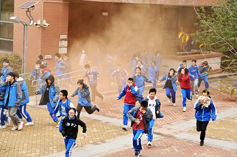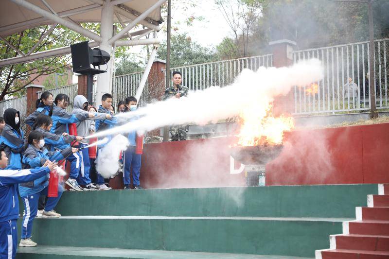 上午9点30分警报声响起,学校按照预定方案启动应急响应程序,各安全岗教师立即到位,全校师生按照指定疏散路线有序、快速撤离到安全地带,随即各班清点人数向总指挥汇报。消防演练结束后,梁教官为现场师生讲解了消防安全和防踩踏安全的相关知识,示范了干粉灭火器的使用方法。随后邀请部分学生上台开展灭火器演习训练,在实践中掌握遇到火灾时的正确扑灭程序。