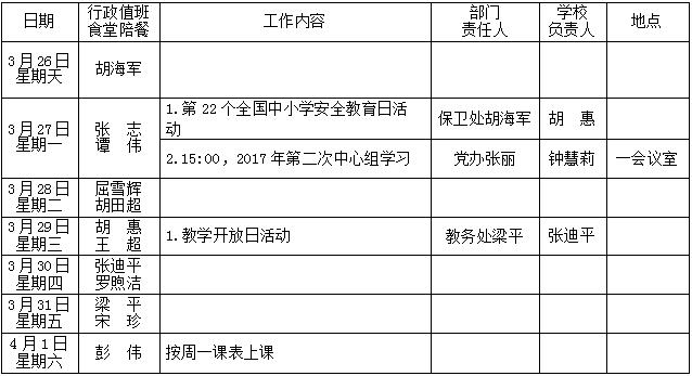 第7周:3月26日-4月1日 来源:校办 发布时间:2017-03-27 09:49:07 浏览次数: 次 【字体:小 大】 聚彩彩票第7周工作安排表 (2017年3月26日-4月1日) 其他:1.29,30日承办长沙市高三数学教学研讨会;2.第三届优秀主题班会展示活动;3.督政督教督学。 校办公室 2017年3月27日 分享到: 【打印正文】