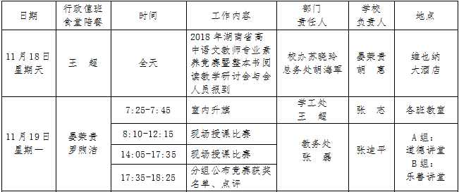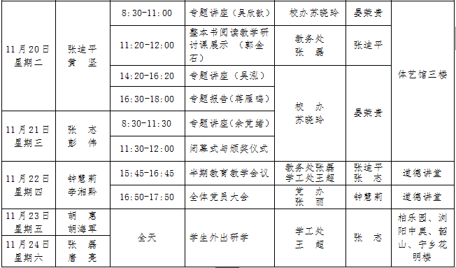 第12周:2018年11月18-24日 来源:校办 发布时间:2018-11-16 18:07:08 浏览次数: 次 【字体:小 大】 聚彩彩票2018-2019学年度第一学期 第12周工作安排表 (2018年11月18-24日) 校办公室 2018年11月15日 分享到: 【打印正文】