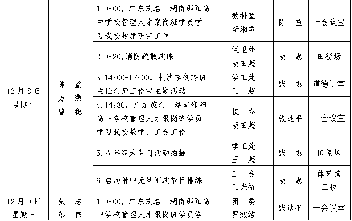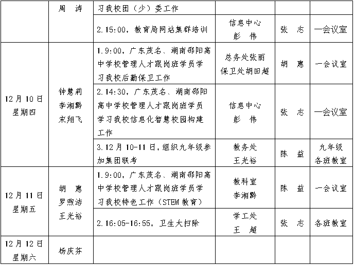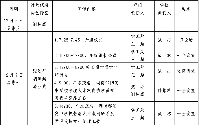 第15周工作安排:2020年12月6-12日