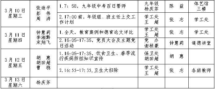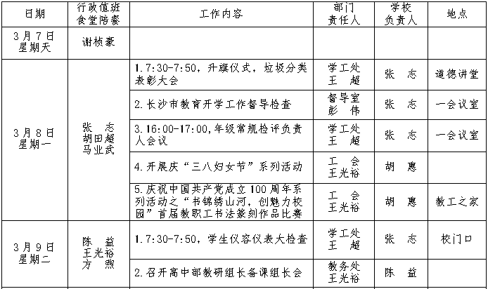 第2周工作安排:2021年3月7-13日 来源:校办 发布时间:2021-03-05 19:40:24 浏览次数: 次 【字体:小 大】 聚彩彩票2020-2021学年度第二学期 第2周工作安排表 (2021年3月7-13日) 校办公室 2021年3月5日 分享到: 【打印正文】